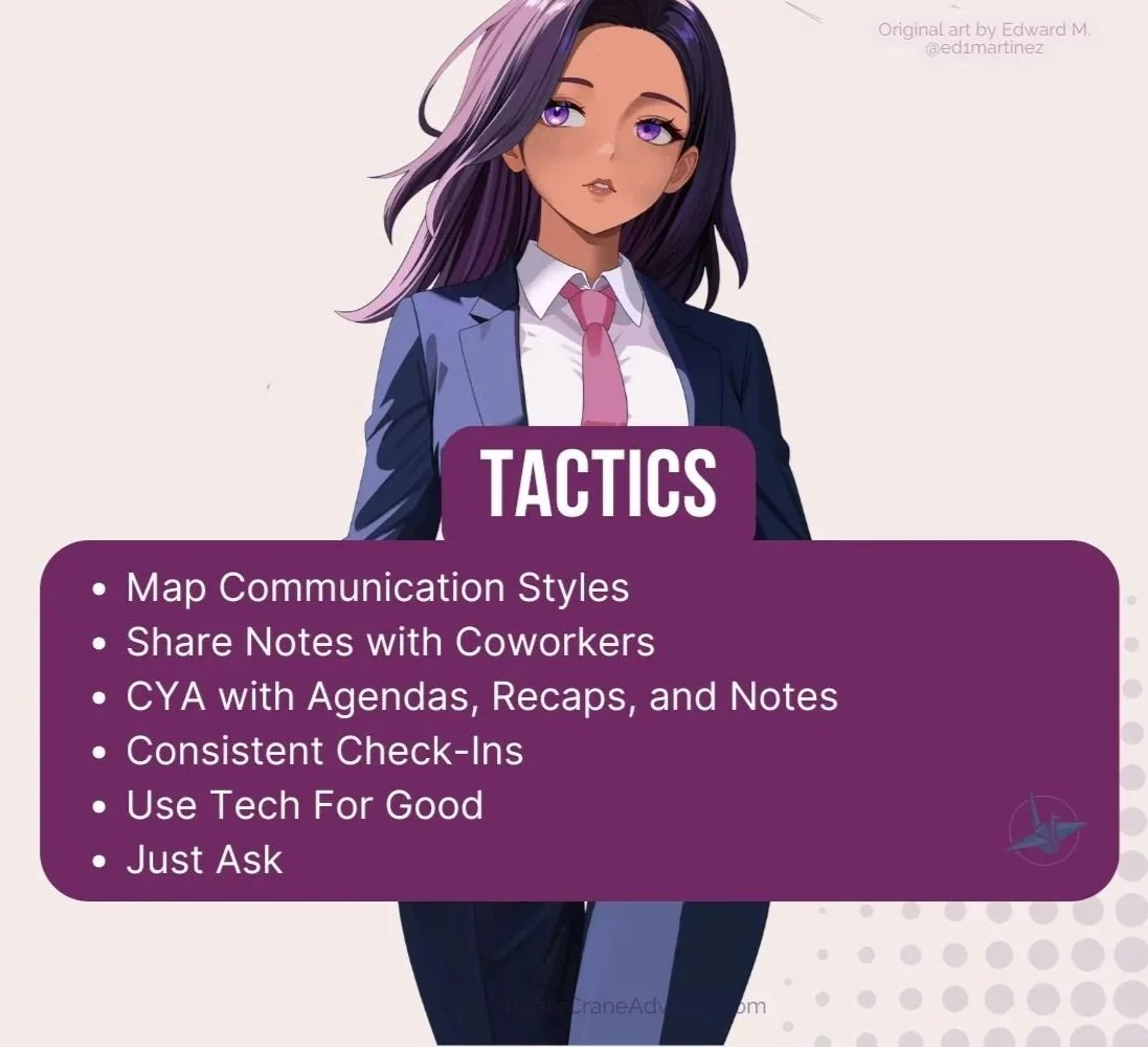 If your brain probably craves clear, written information, use this to your advantage. Make sure all meetings have an agenda before hand (and it’s okay to ask for one if they didn’t add one). After meetings, send recap emails: "Just to confirm my understanding…" or “Here are my notes to ensure we’re on the same page.” This isn't annoying—it's professional and helps everyone stay aligned…and a great CYA.